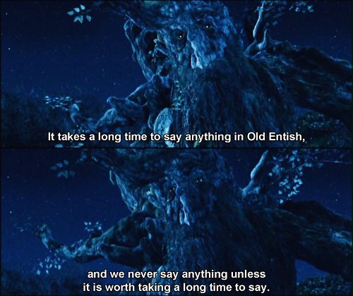 [Old Entish] is a lovely language, but it takes a very long time to say anything in it, because we do not say anything in it, unless it is worth taking a long time to say, and to listen to.
